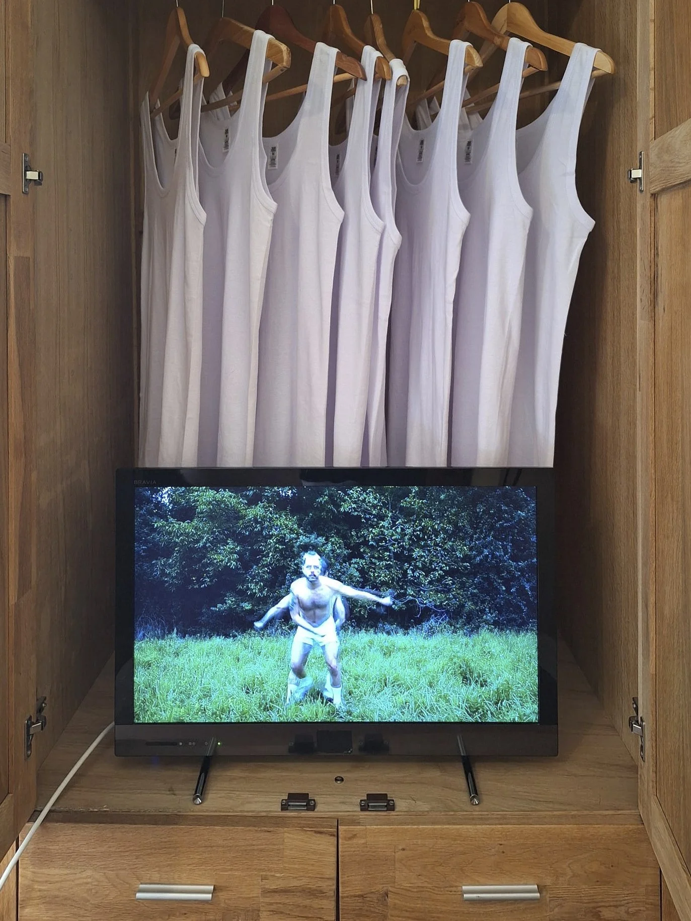 The installation examines how physical culture shapes and constrains the body, from nationalist gymnastics and modern fitness rituals to the subtle regimes of self-optimization. Yet repetition also becomes a site of refusal: gestures slip, slow, exaggerate, falter, become absurd. The body resists its own choreography, queering ideals of strength, purity and control.